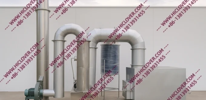 Optional: Wet scrubber or quench tower for flue gas cooling and neutralization